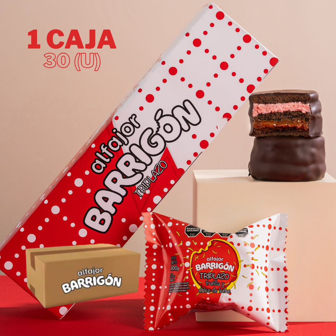 ALFAJOR BARRIGON TRIPLAZO FRUTILLA Y DULCE DE LECHE X100 GRS (CAJA X 30 U)