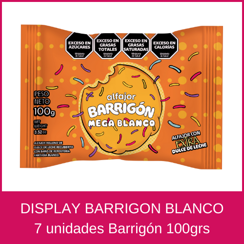 Alfajor barrigon display x7 unidades x 100grs (blanco)